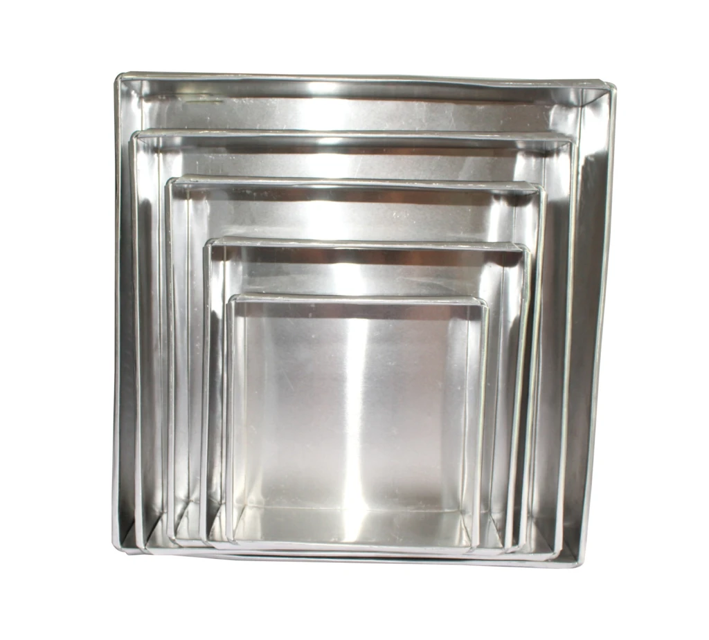 Set de moldes para torta cuadrado por 5 unidades en aluminio de alta pureza y calidad.